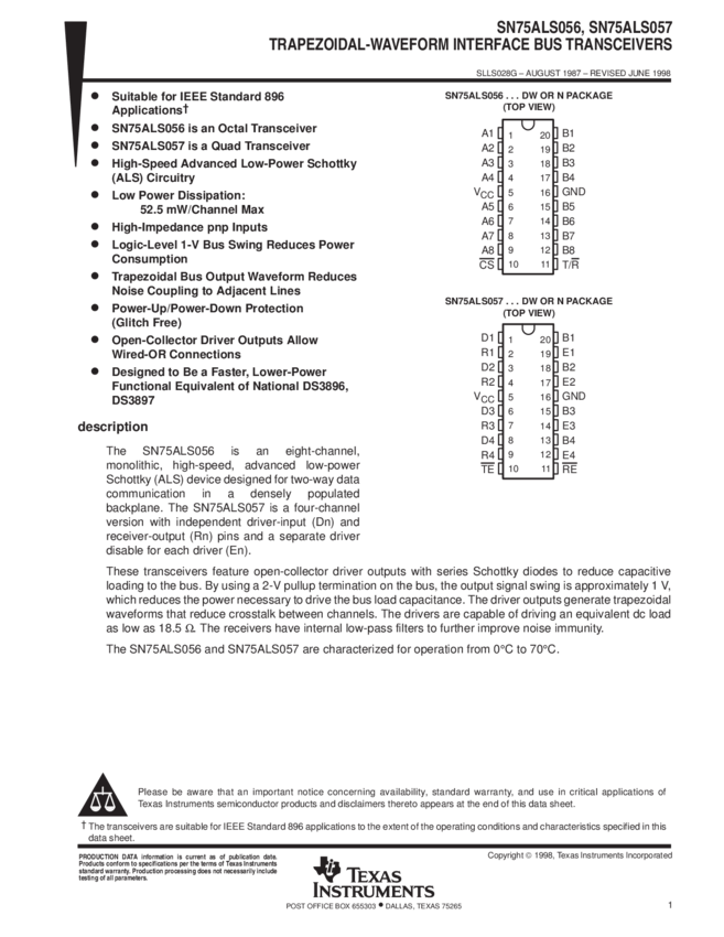 Trapezodial Transceiver 1TX 1RX 20-Pin SOIC T/R