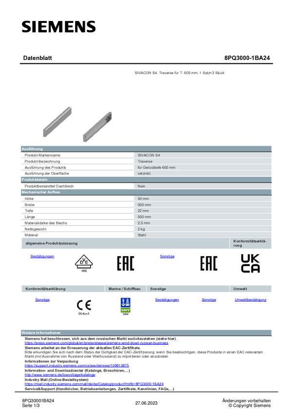 Trawers Siemens 8PQ3000-1BA24 1 szt.