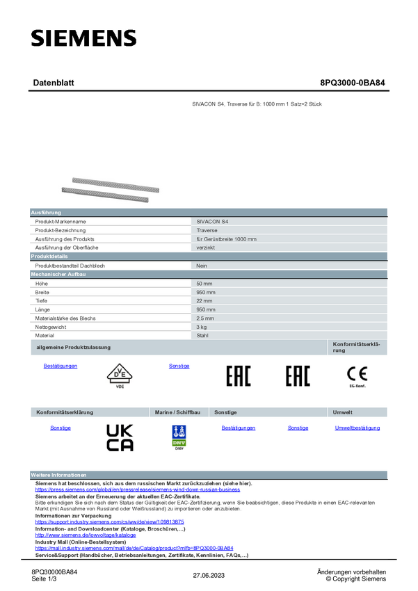 Trawers Siemens 8PQ3000-0BA84 1 szt.