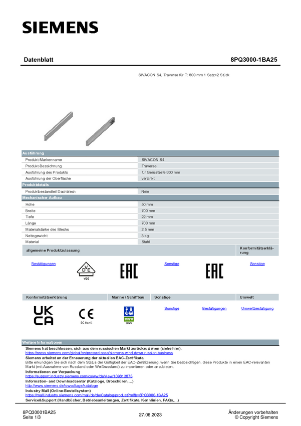 Trawers Siemens 8PQ3000-1BA25 1 szt.
