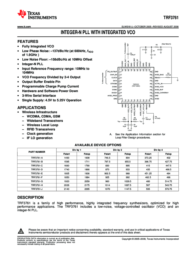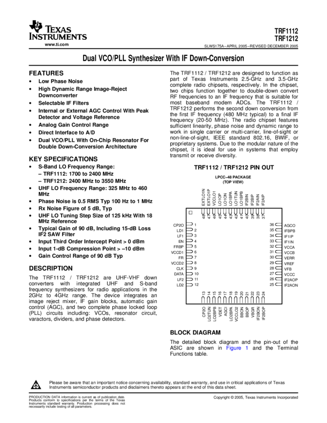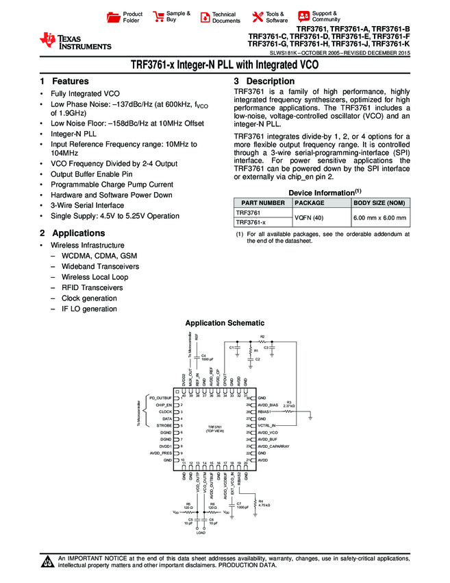 Dual VCO/PLL Synthesizer 48-Pin VQFN EP T/R