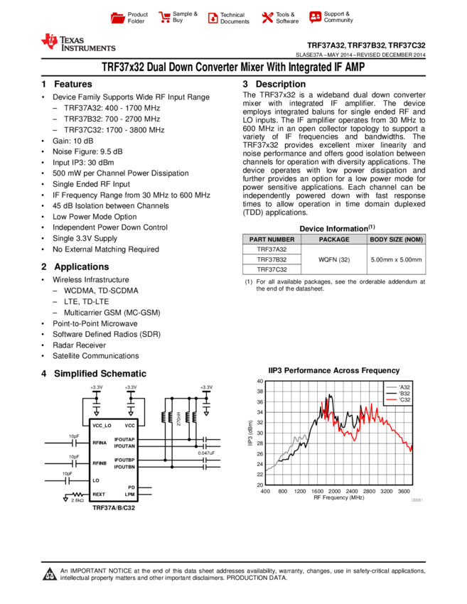 Up/Down Conv Mixer 3.3V 1700MHz 32-Pin WQFN T/R
