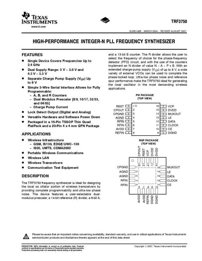 PLL Frequency Synthesizer Single Up to 2400MHz 16-Pin TSSOP T/R