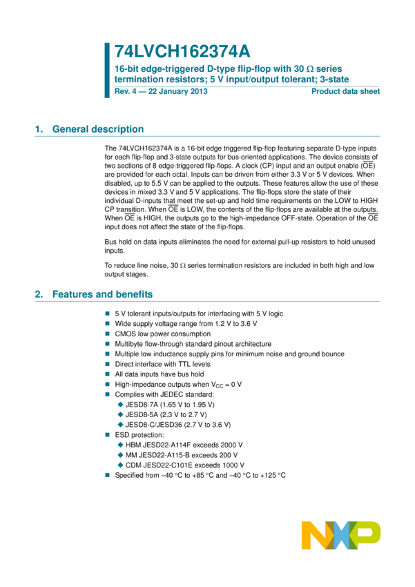 16-bit edge-triggered D-type flip-flop with 30 Ohm series termination resistors; 5 V input/output tolerant; 3-state
