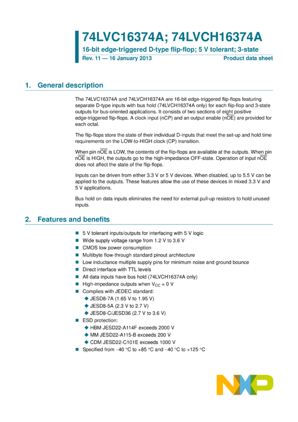 16-bit edge-triggered D-type flip-flop; 5 V tolerant; 3-state