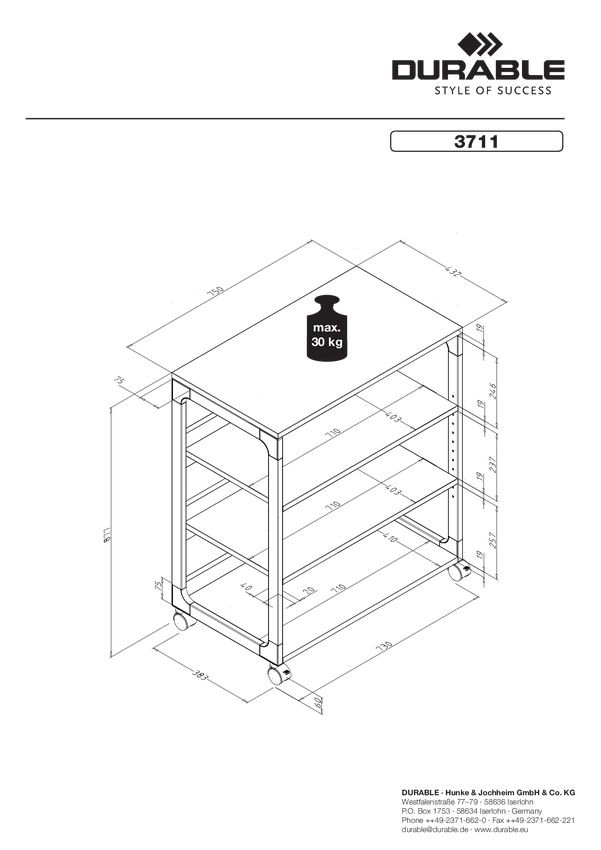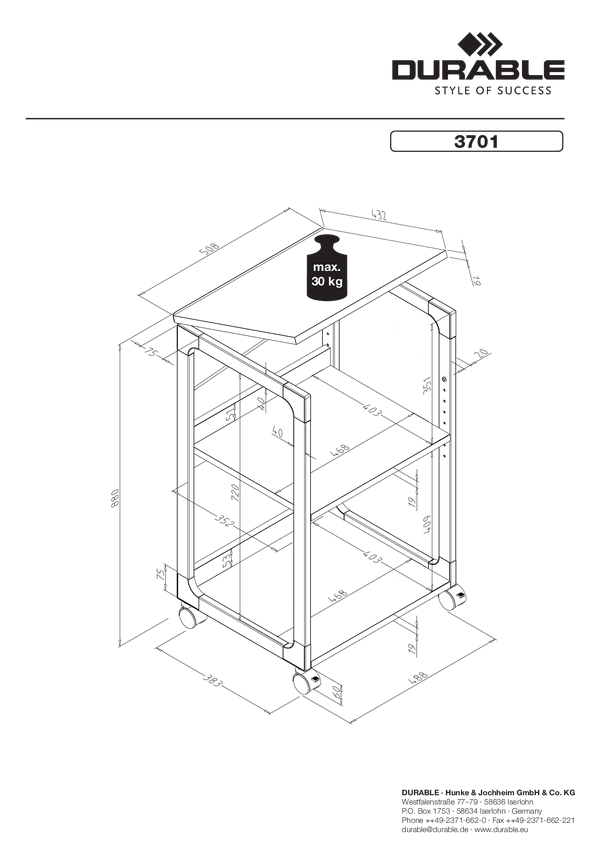 Wózek wielofunkcyjny, wózek systemowy Durable Trolley 88 (S x W x G) 750 x 879 x 432 mm szary 1 szt.