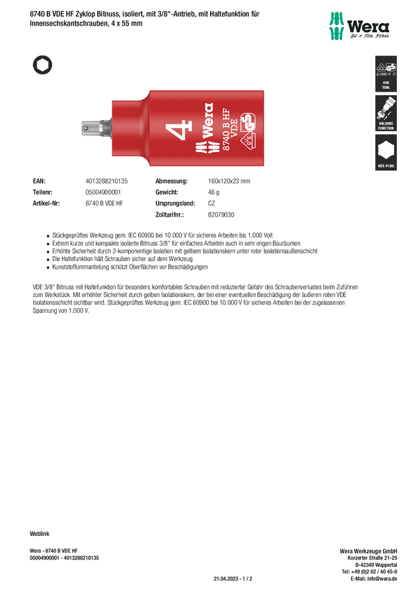 Nasadka trzpieniowa Wera 05004925001 1 szt.