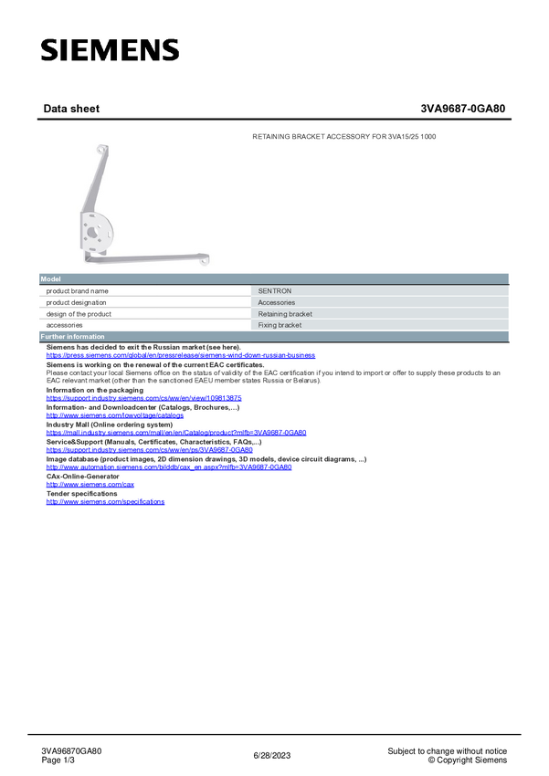 Uchwyt trzymający Siemens 3VA9687-0GA80 1 szt.