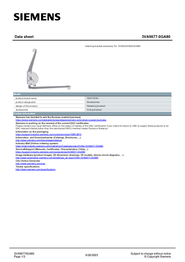 Uchwyt trzymający Siemens 3VA9677-0GA80 1 szt.