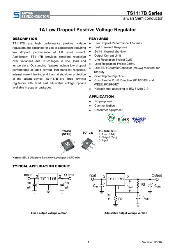 PMIC - regulator napięcia - Liniowy (LDO) Taiwan Semiconductor TS1117BCW33 RPG TS1117BCW33 RPG, 1 szt.