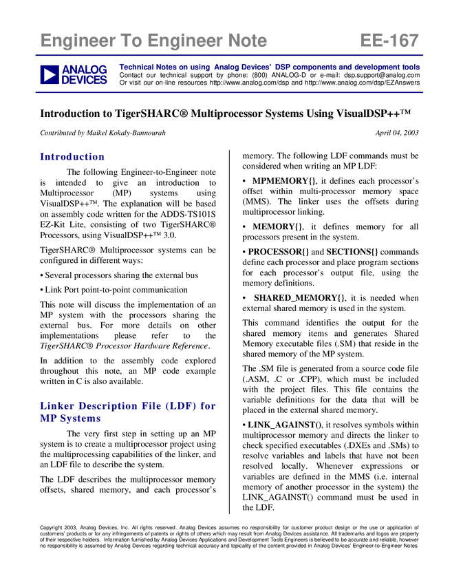 ADSP-TS203S: 500 MHz TigerSHARC Processor with 4 Mbit on-chip embedded DRAM