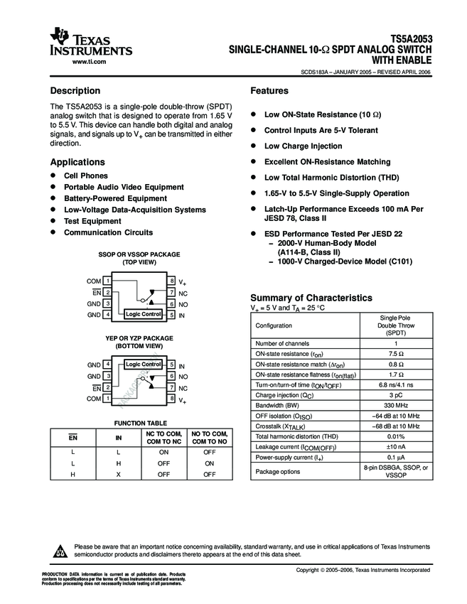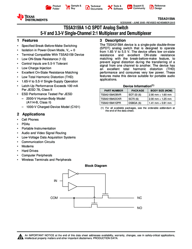 Analog Switch Single SPDT 6-Pin DSBGA T/R