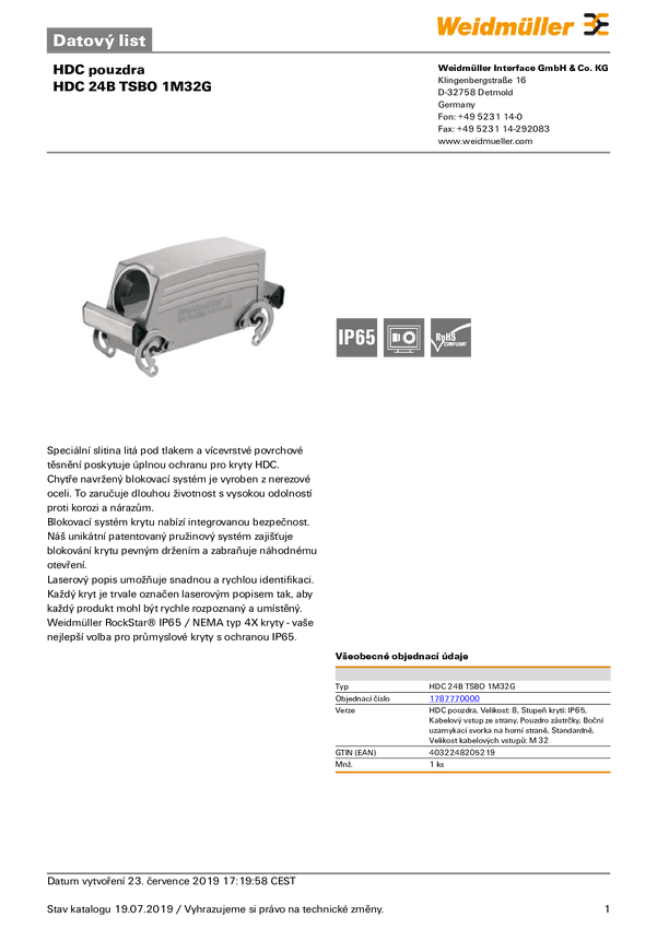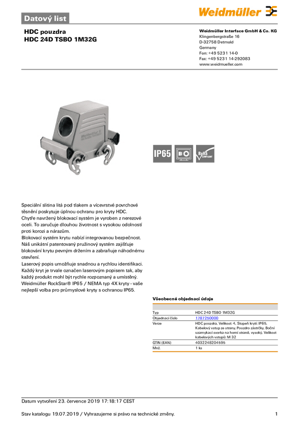 Weidmüller HDC 24D TSBU 1M32G 1787230000 Obudowa złącza męskiego 1 szt.