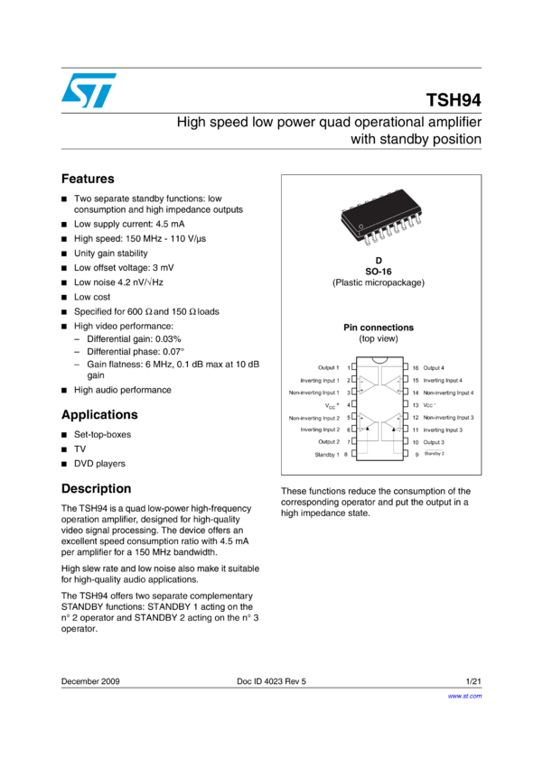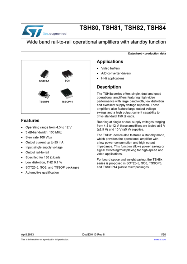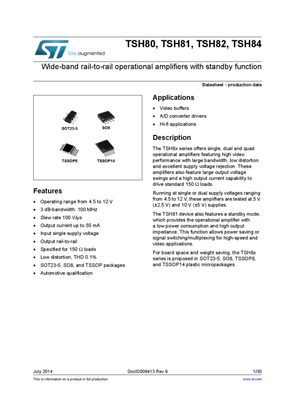 Video op-amp, single supply, low input and output rail of 40mV/GND