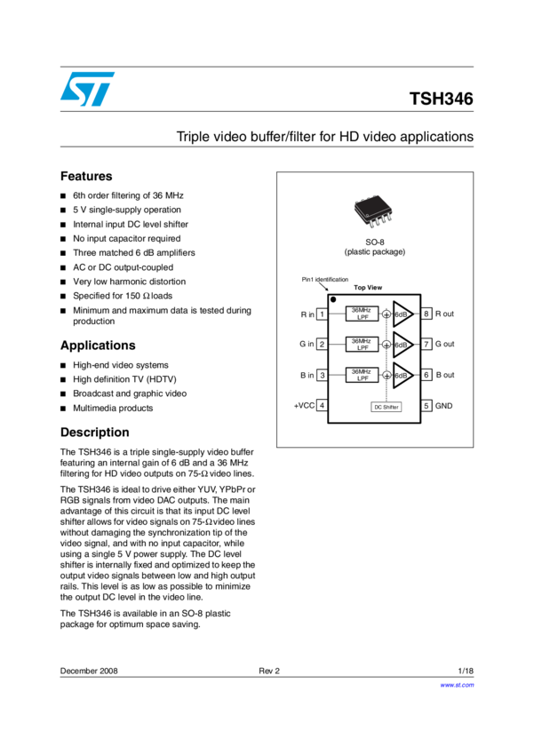 Video Amp Triple 5.5V 8-Pin SO N T/R