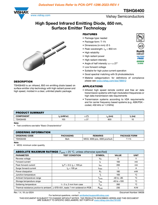 High Speed Infrared Emitting Diode, 850 nm, Surface Emitter Technology