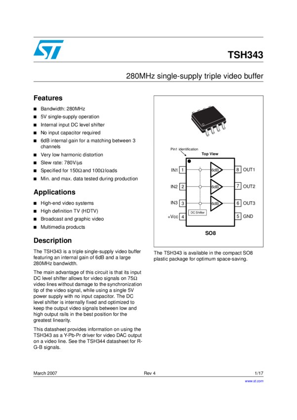 Triple Video Buffer/Filter 8-Pin SO N T/R