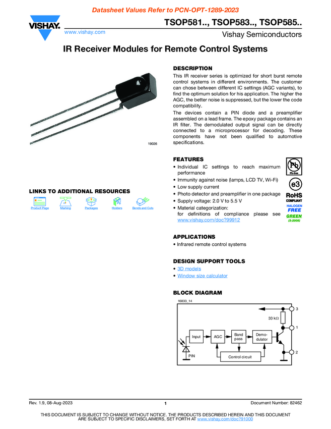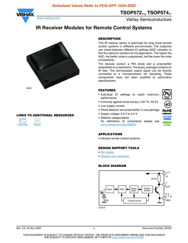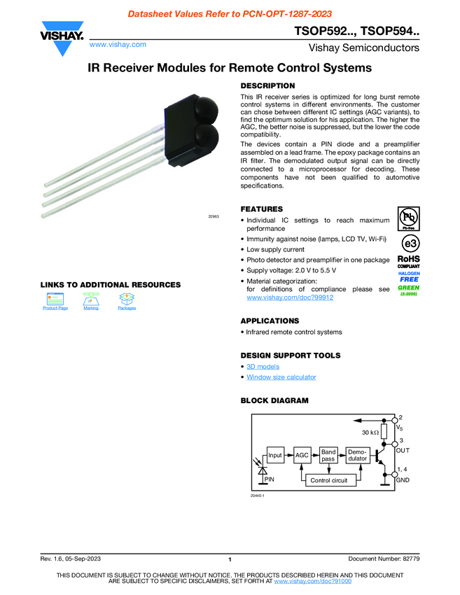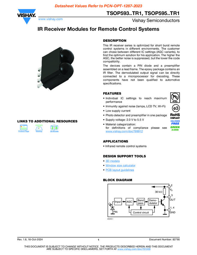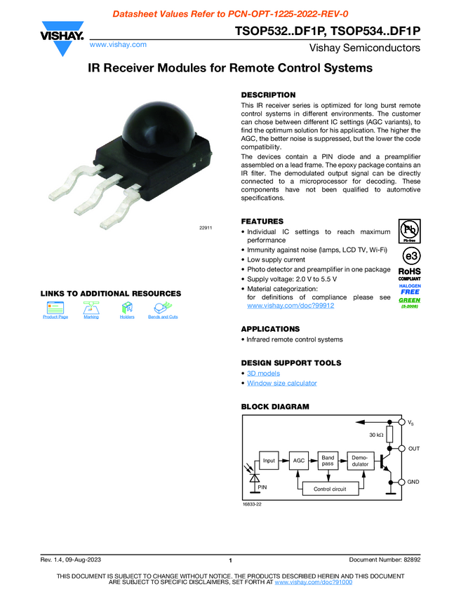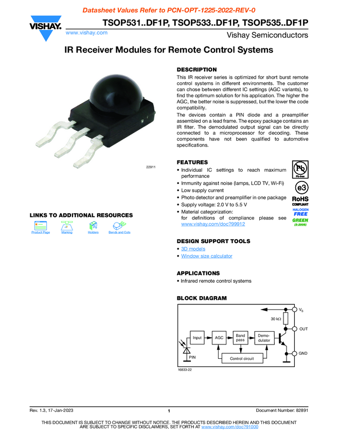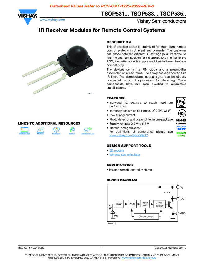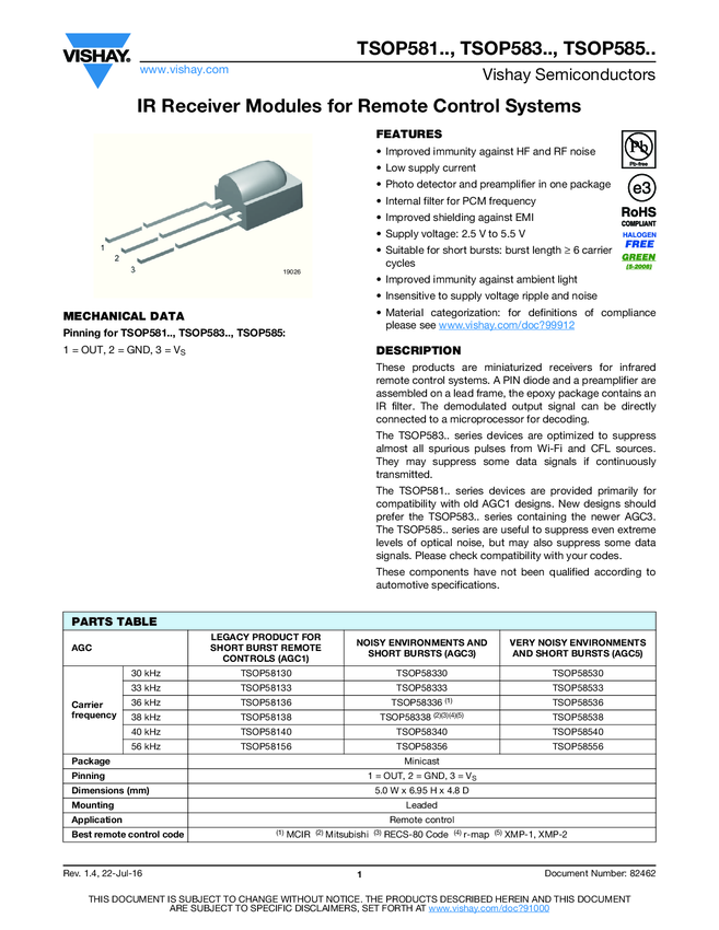 IR Remote Receiver 38KHz 40m 3-Pin MiniCast