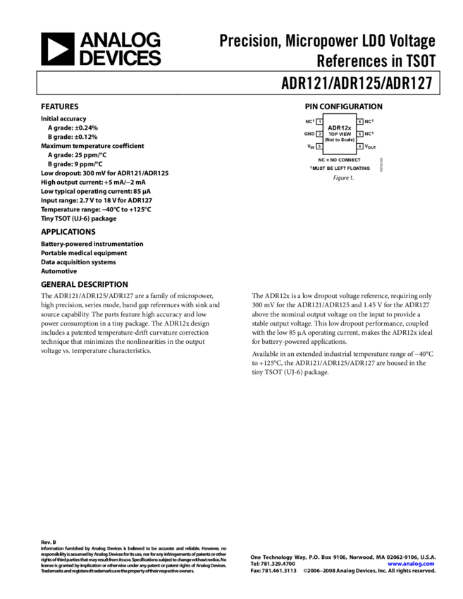 Precision, Micropower LD0 1.25 V Voltage Reference in TSOT