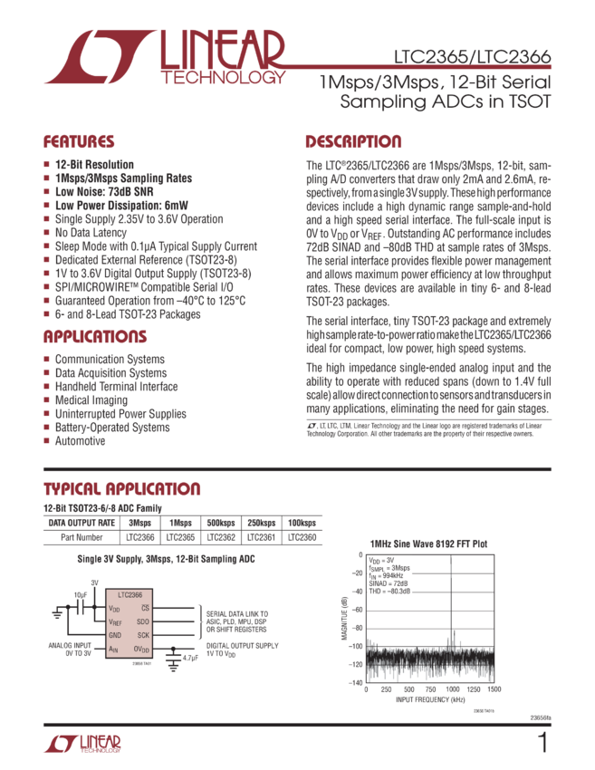 3Msps, 12-Bit Serial ADCs in TSOT-23