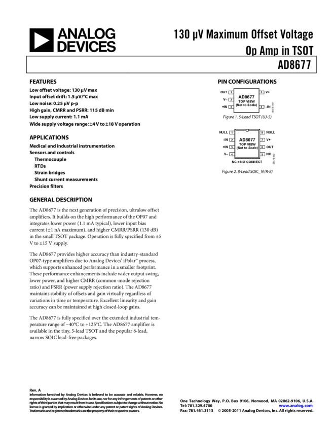 Low Power, Precision, Auto-Zero Op Amp (5-lead TSOT-23)