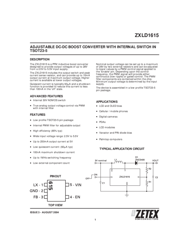 Adjustable DC/DC Boost Converter with Internal Switch in TSOT25
