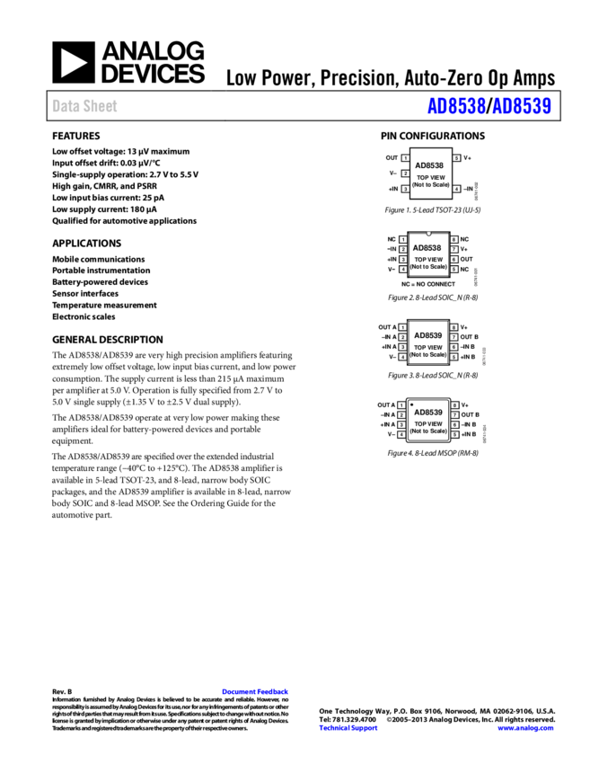 AD8538: Low Power, Precision, Auto-Zero Op Amp (5-lead TSOT-23)