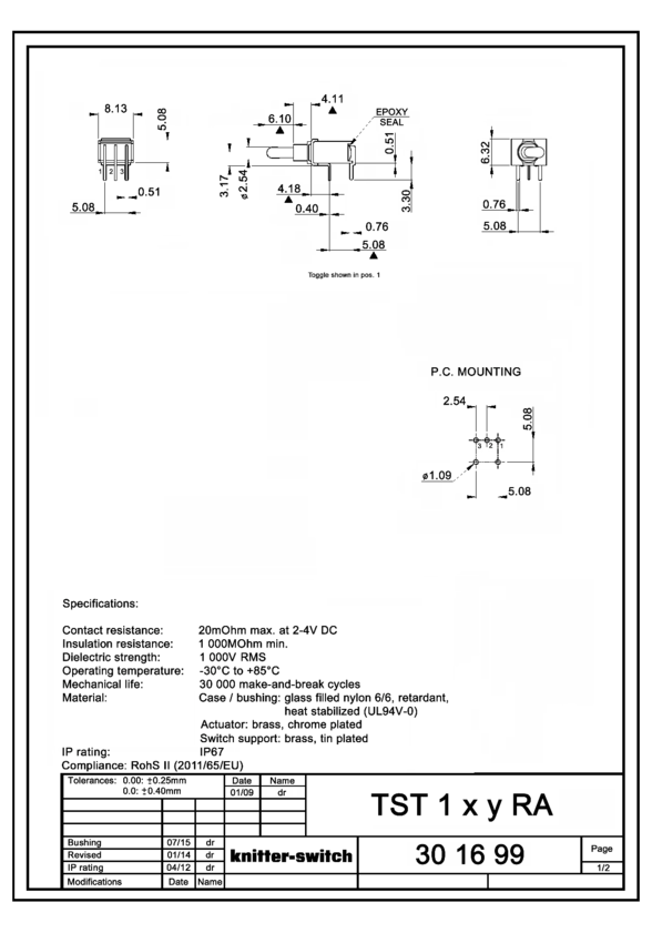 Switch Toggle ON None ON SPDT Short Baton Toggle PC Pins 20VAC 20VDC 0.4VA PC Mount with Bracket