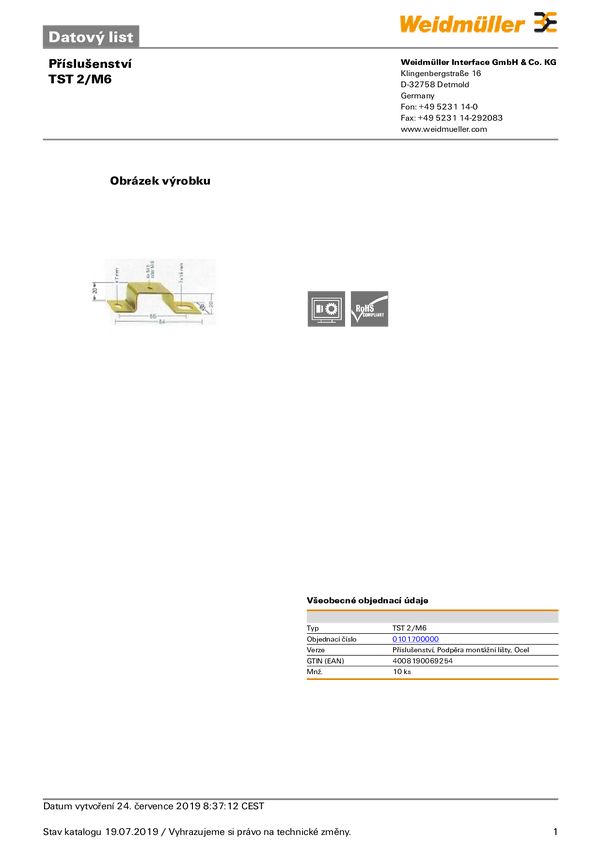 Wspornik Weidmüller TST 2/M6 0101700000, 10 szt.