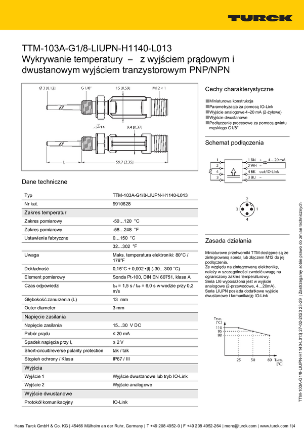 Turck 9910628 TTM-103A-G1/8-LIUPN-H1140-L013 Czujnik temperatury