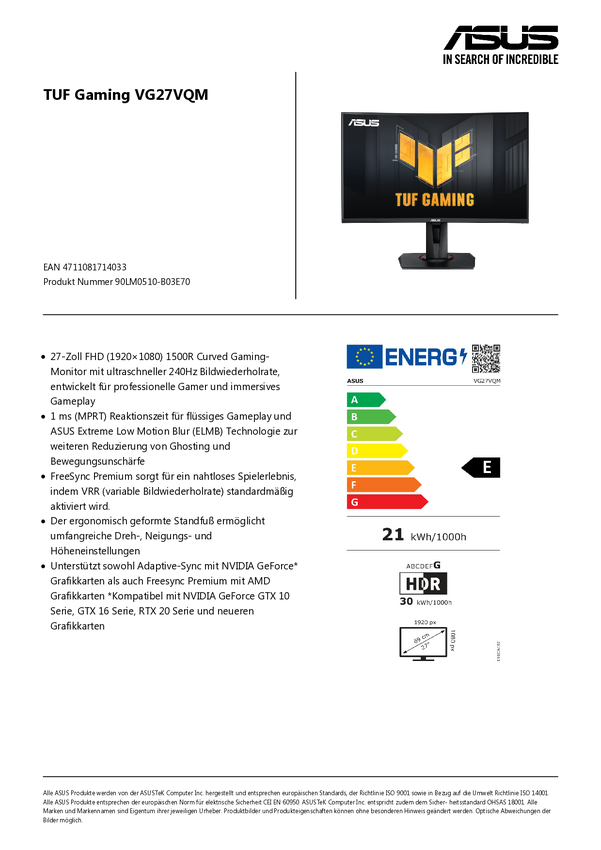 Dis 27 Asus VG27VQM TUF Gaming
