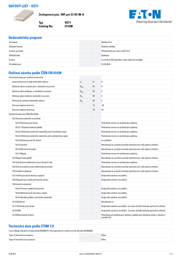 Tulejka izolacyjna Eaton VST1 1 szt.
