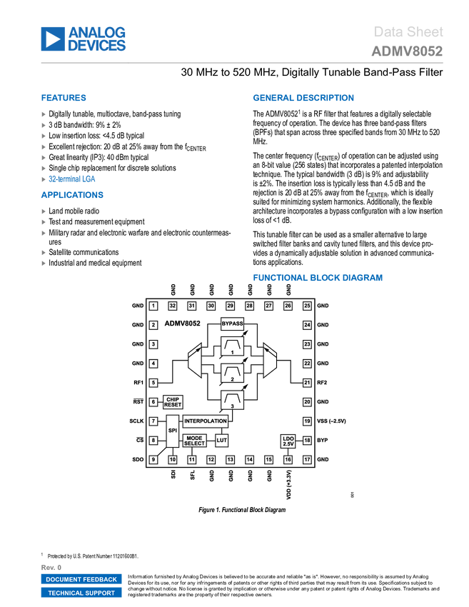 30 MHz to 520 MHz Digitally Tunable Band-Pass Filter