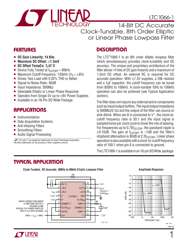 14-Bit DC Accurate Clock-Tunable, 8th Order Elliptic or Linear Phase Lowpass Filter