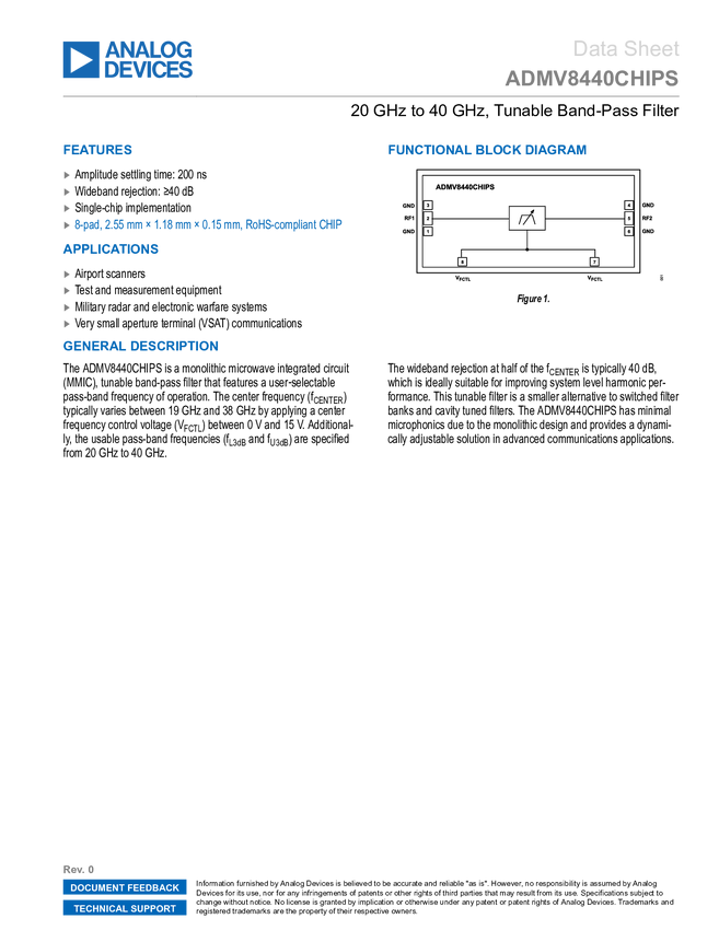 20 GHz to 40 GHz, Tunable Band-Pass Filter