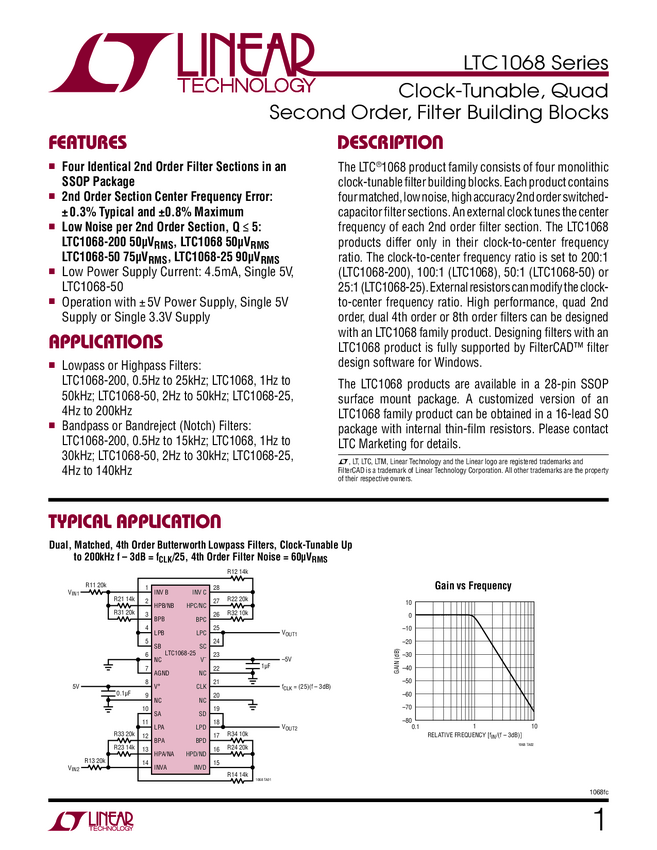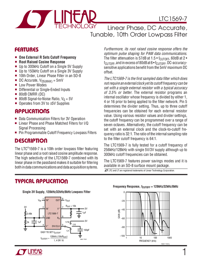 Linear Phase, DC Accurate, Tunable, 10th Order Lowpass Filter