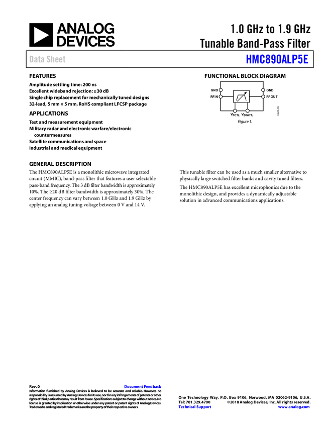 1.0 GHz to 1.9 GHz Tunable Band-Pass Filter