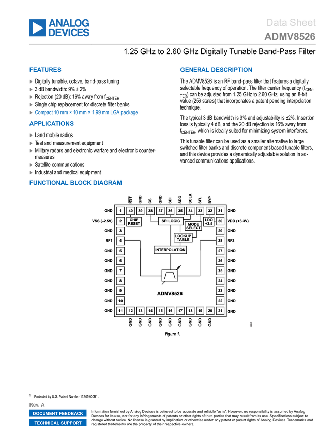 1.25 GHz to 2.60 GHz Digitally Tunable Band-Pass Filter