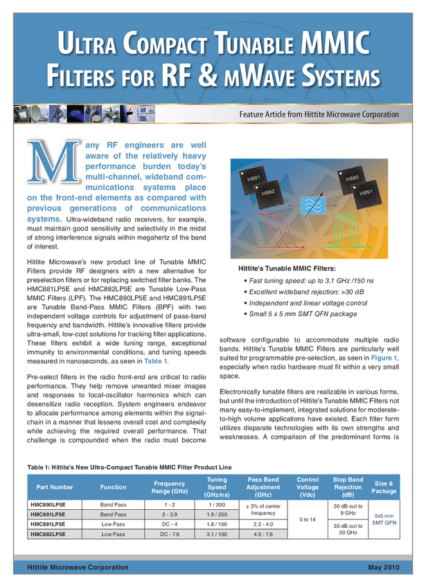 Filter - Tunable, Band Pass SMT, 5.9 - 11.2 GHz