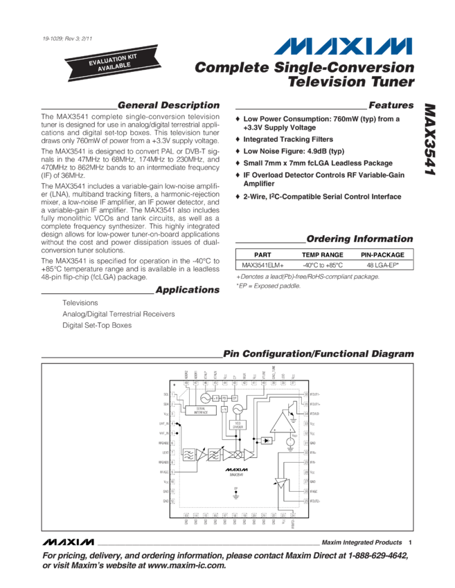 MAX2160, MAX2160EBG ISDB-T Single-Segment Low-IF Tuners