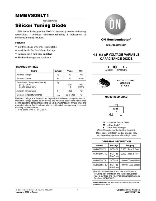 Tuning Diode 20 V C2/C8 = 1.8-2.6 900 MHz