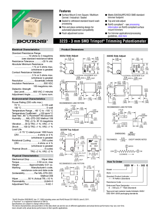 Res Cermet Trimmer 20K Ohm 20% 1/8W 11(Elec)Turns (3.9 X 3.52 X 4.16mm) J-Hook SMD Tube