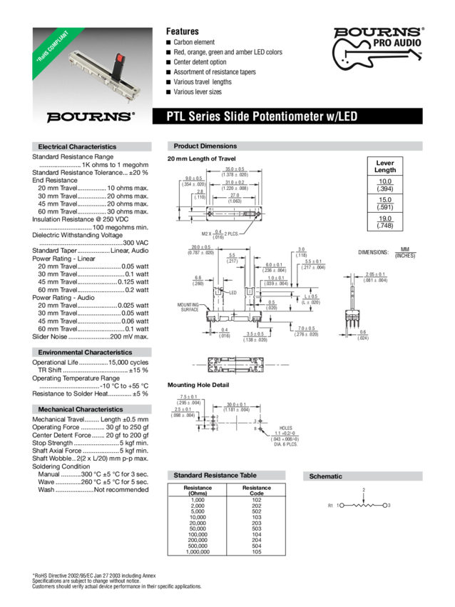 Res Carbon Film POT 20K Ohm 10% 1/20W 1(Elec)/1(Mech)Turns 6mm (28.4 X 9.5 X 11.3mm) Pin Panel Mount/Thru-Hole