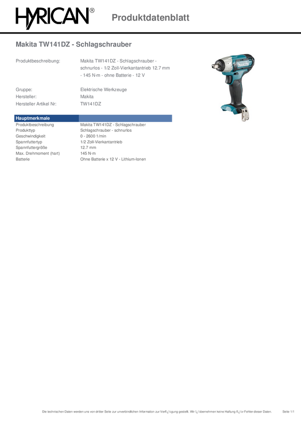 Wkrętarka udarowa akumulatorowa Makita S_0380_6497340 12 V