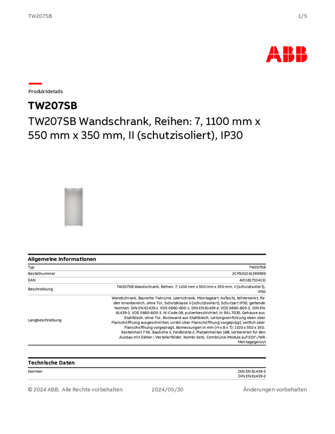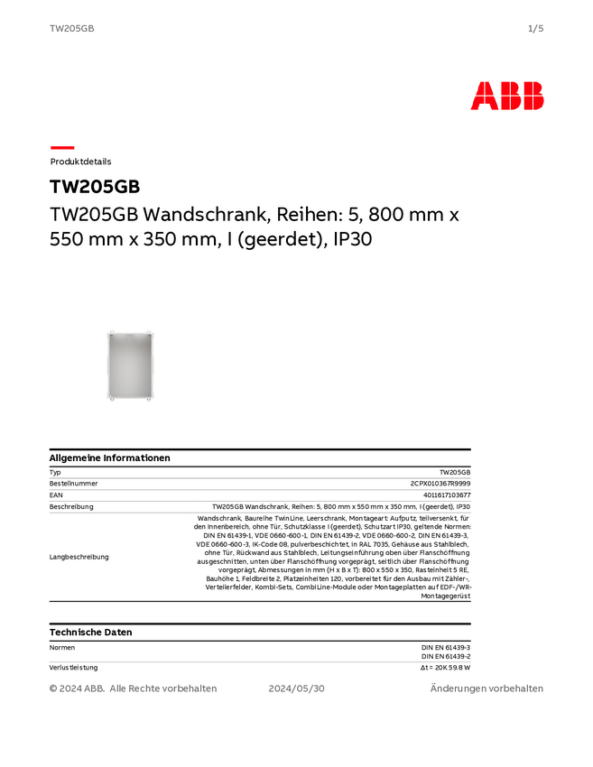 Striebel & John 2CPX010367R9999 TW205GB Pusta szafka nadtynkowy Ilość rzędów = 5 Content 1 szt.