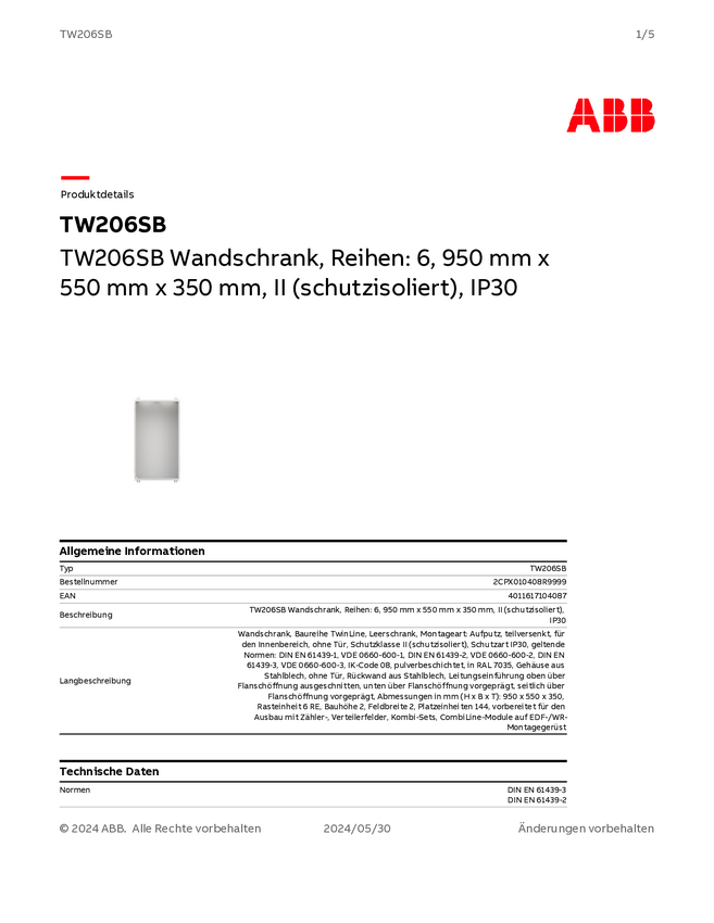 Striebel & John 2CPX010408R9999 TW206SB Pusta szafka nadtynkowy Ilość rzędów = 6 Content 1 szt.