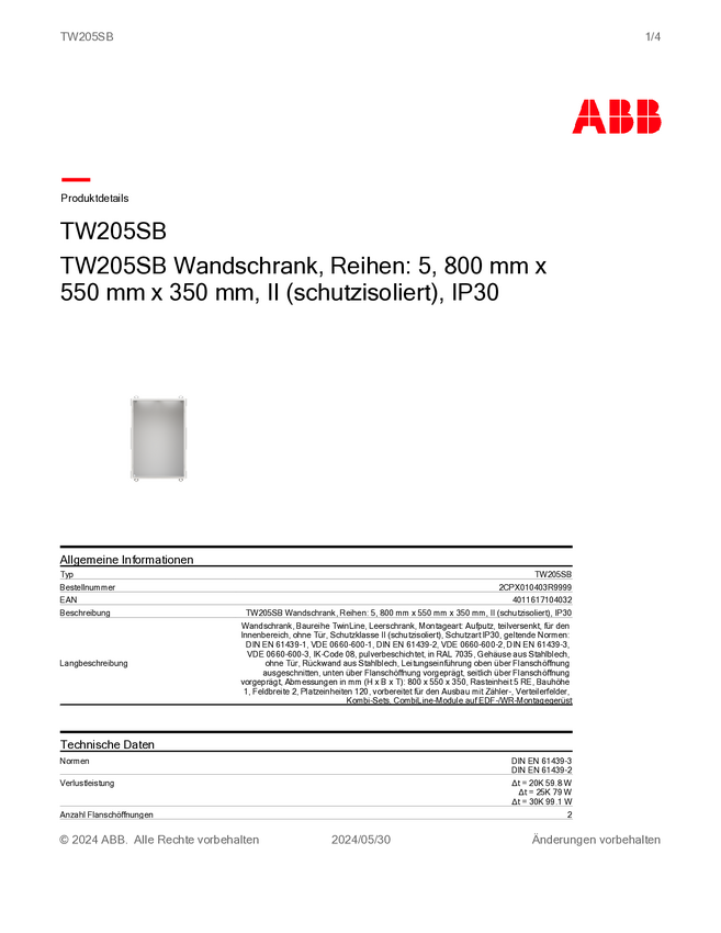 Striebel & John 2CPX010403R9999 TW205SB Pusta szafka nadtynkowy Ilość rzędów = 5 Content 1 szt.
