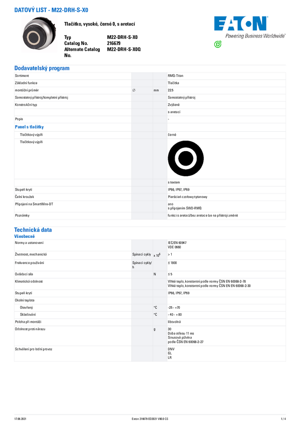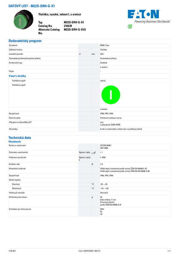 Eaton 216678 M22S-DRH-G-X1 Przycisk pierścień przedni z tworzywa sztucznego 1 szt.