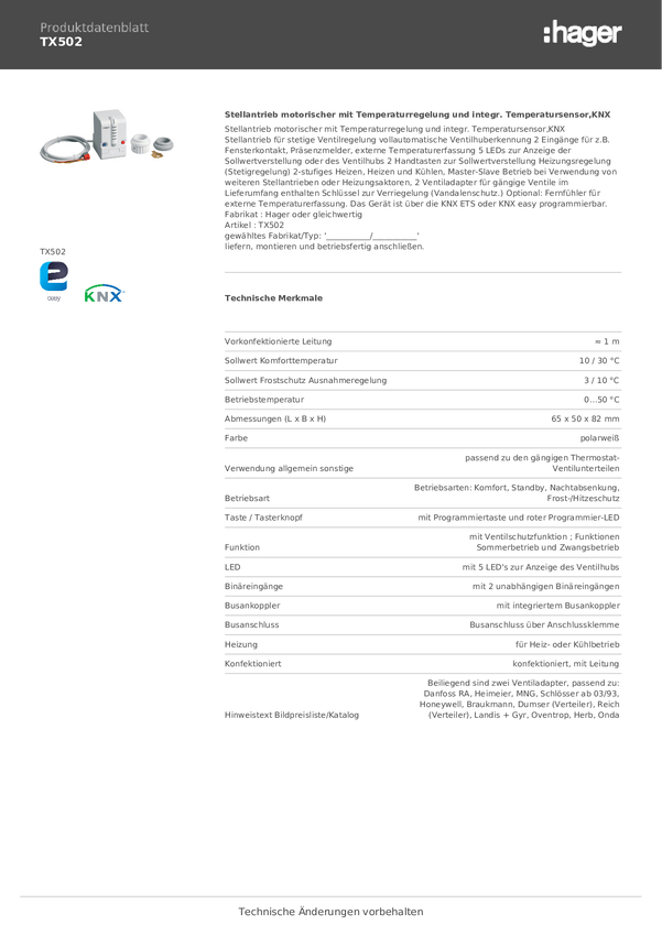 Siłownik Hager TX502