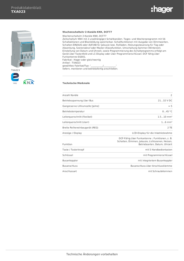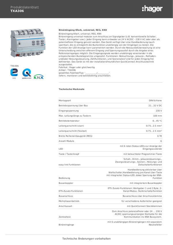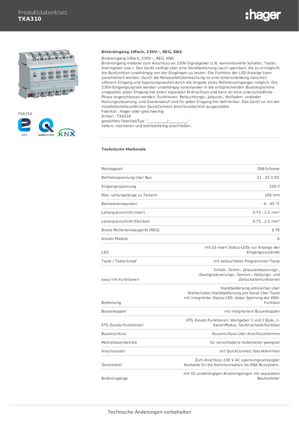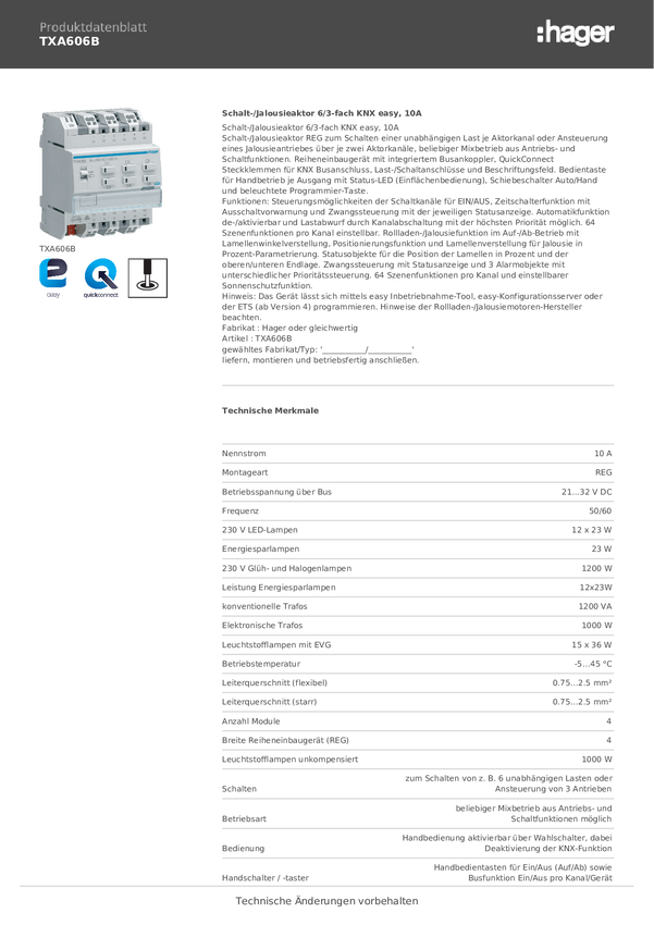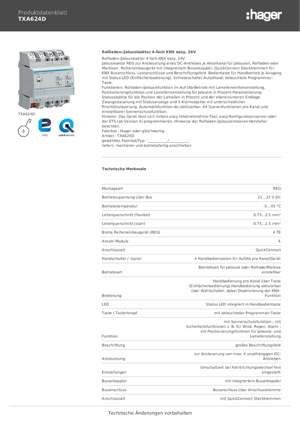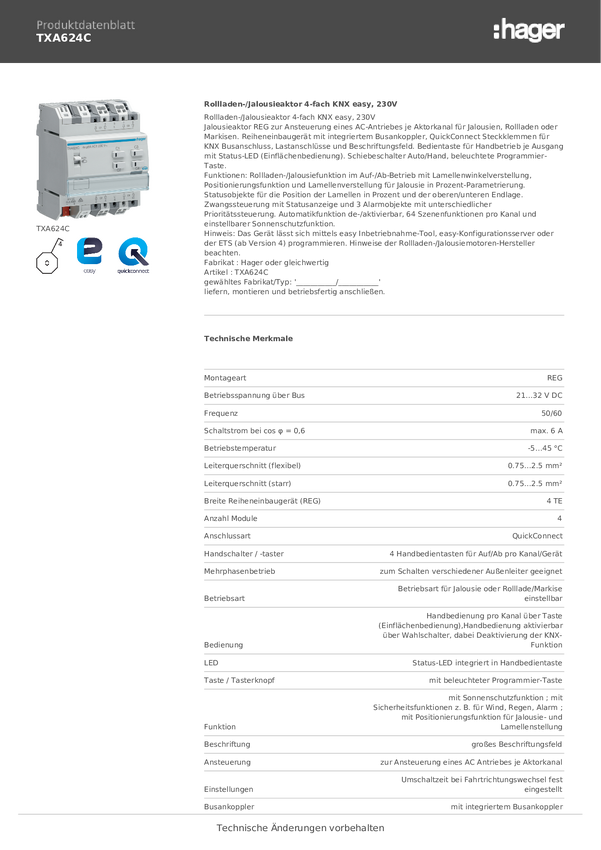 Napęd żaluzji Hager TXA610D Sonstiger Sensor